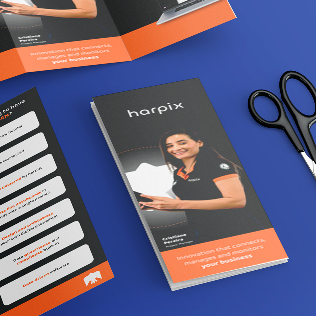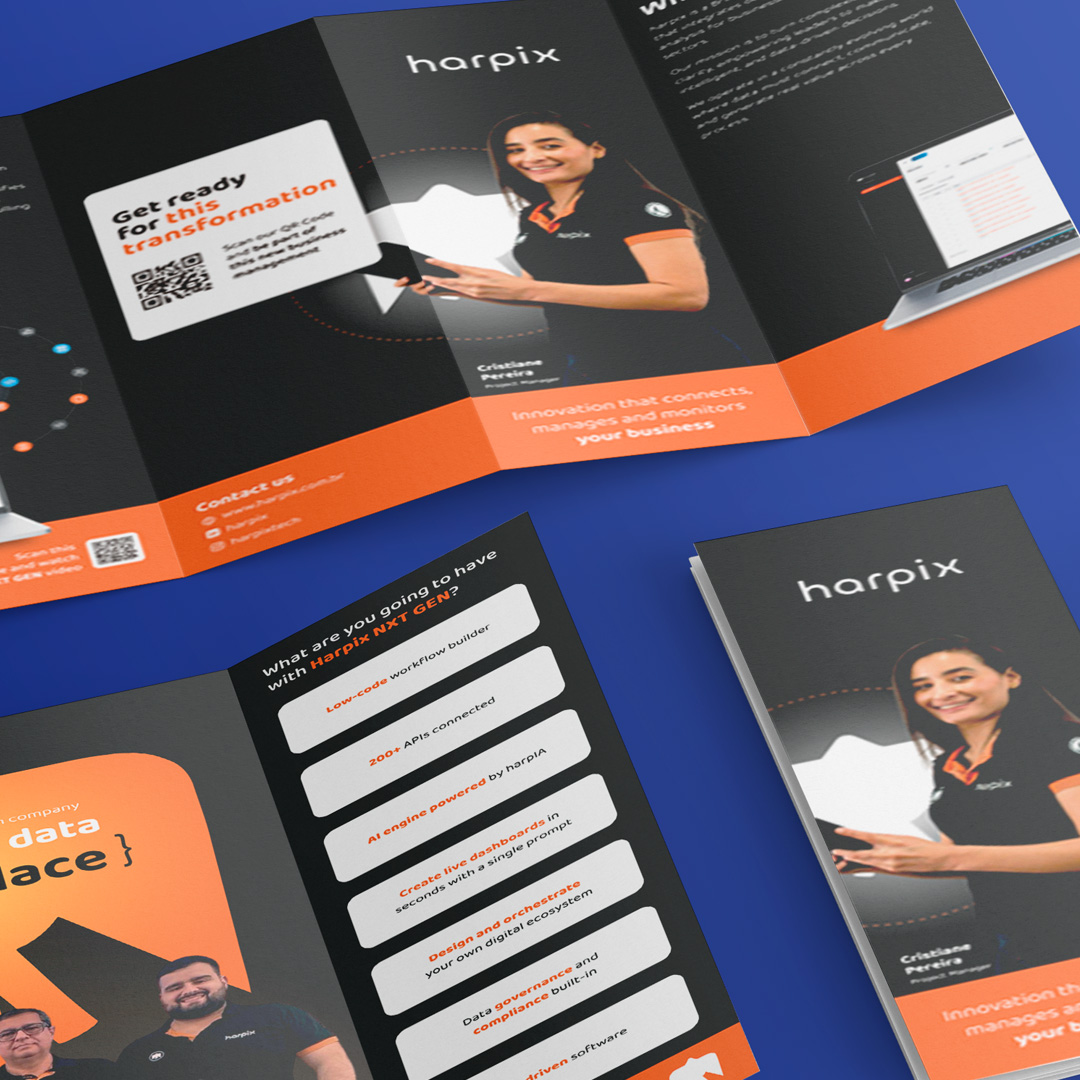 Folder explicativo da Harpix NXT Gen com direcionamento para a LP