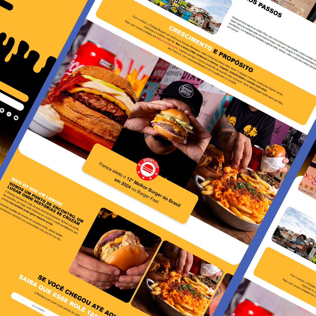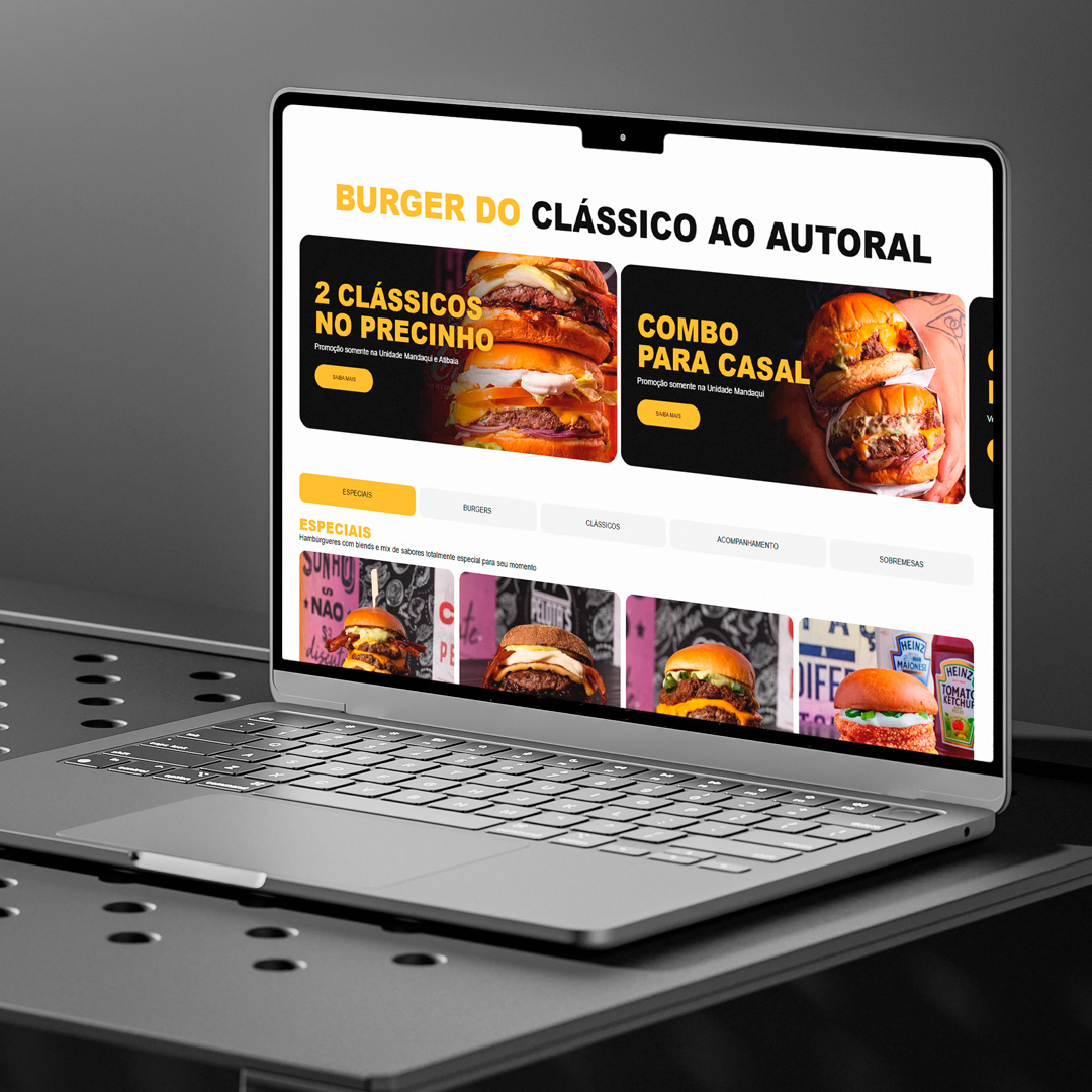 O projeto teve início com uma desk research analisando as principais hamburguerias do Brasil. O diagnóstico foi claro: a maioria não possui website ou apresenta estruturas pouco estratégicas e frágeis.